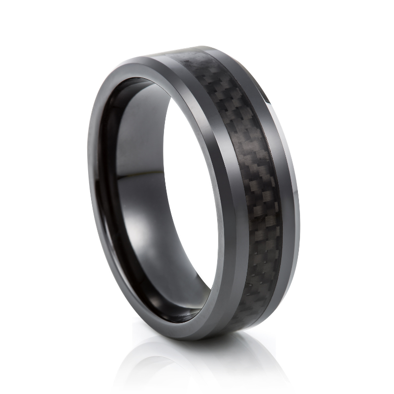 Black Carbon Fiber Tungsten Wedding Band