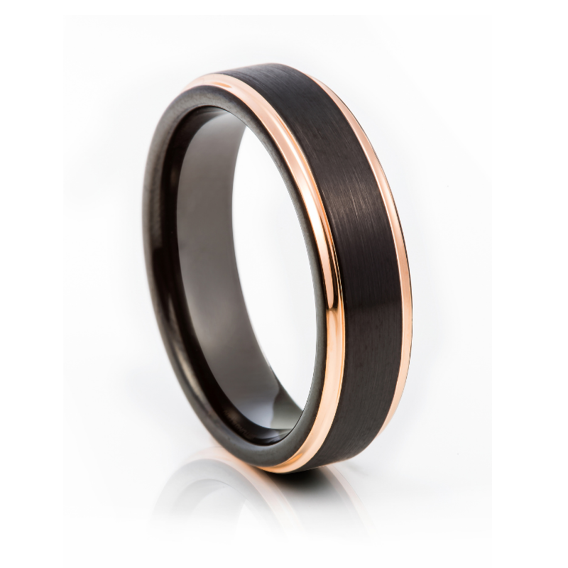 Black Matt and Rose Gold Tungsten Ring