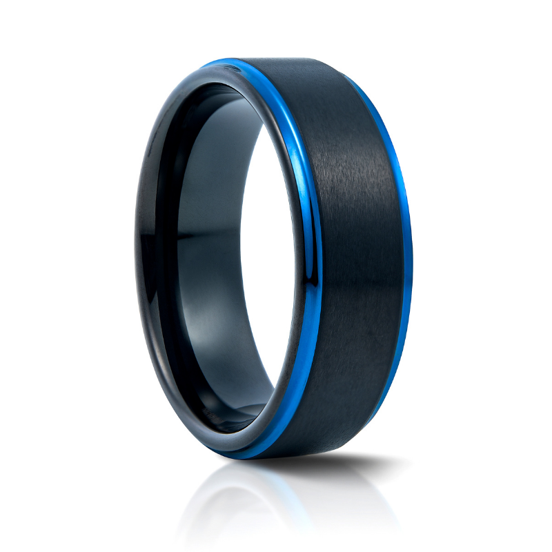This Black Tungsten Ring with Blue edges  is sophisticated and classy.