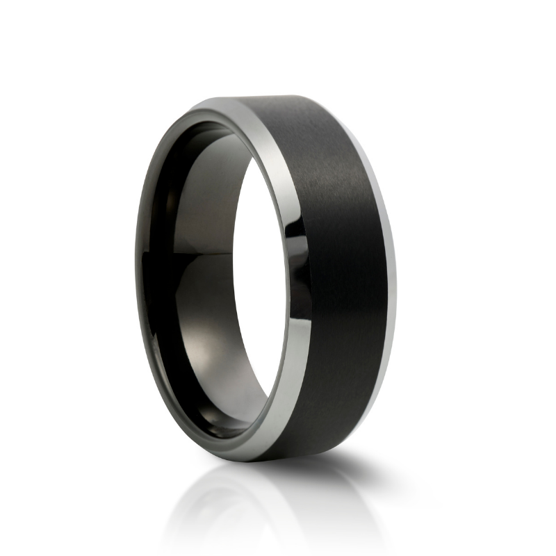 Our Matt and Polished Black Tungsten Ring is a Sleek gentleman’s Wedding Band with a Brushed Metal Finish and Highly Polished Sides.