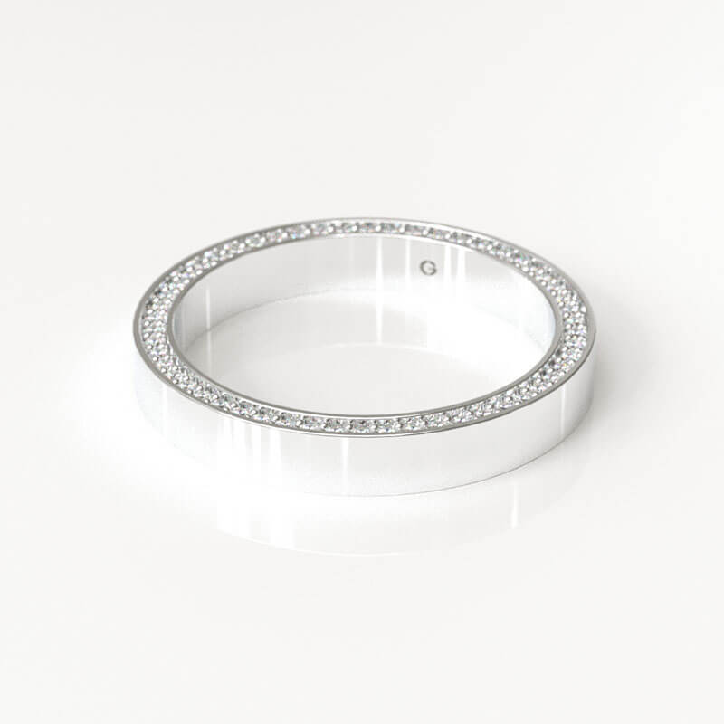 Be the first to review “White Gold Flat Band with Side Pavé Diamond” Cancel reply